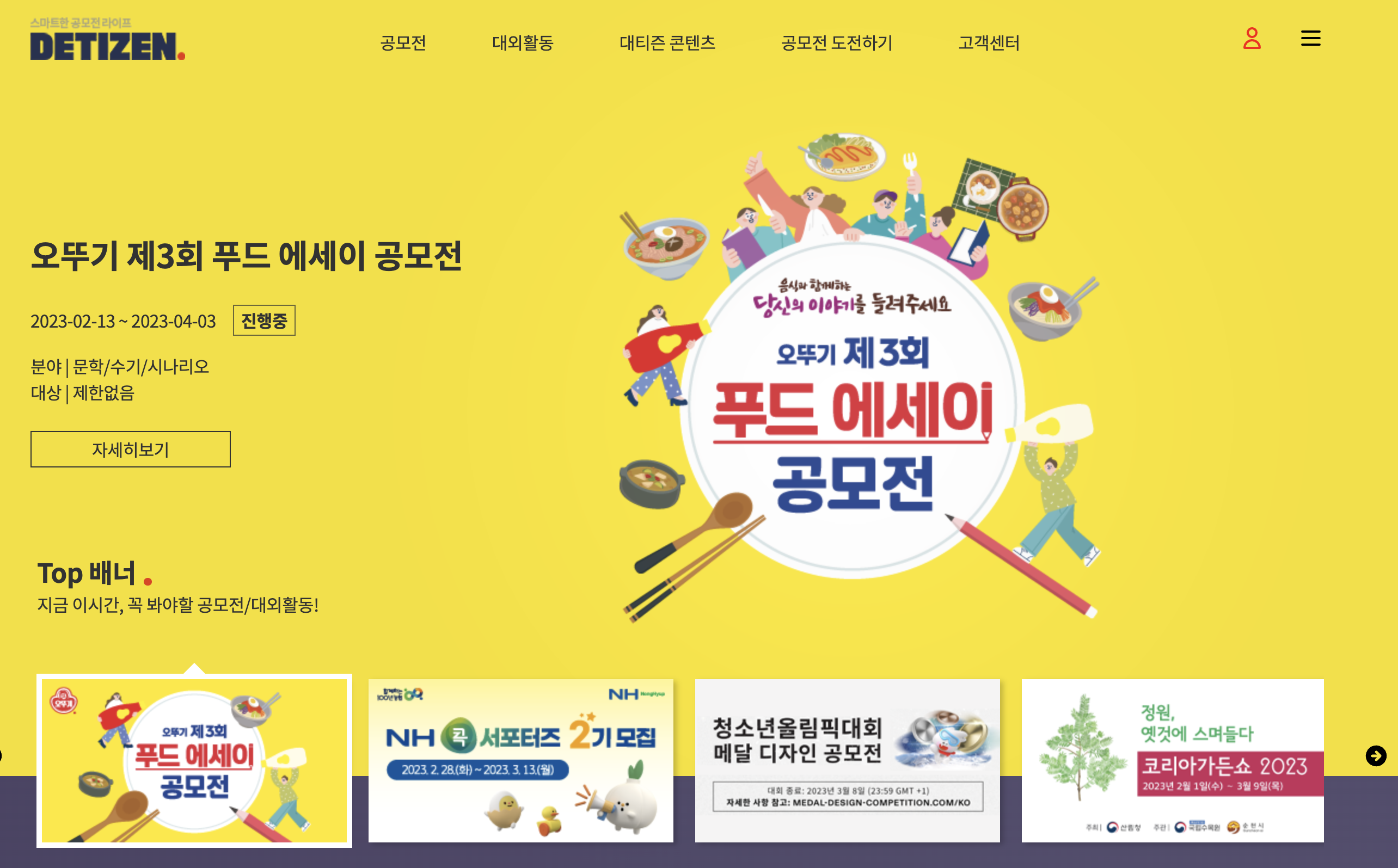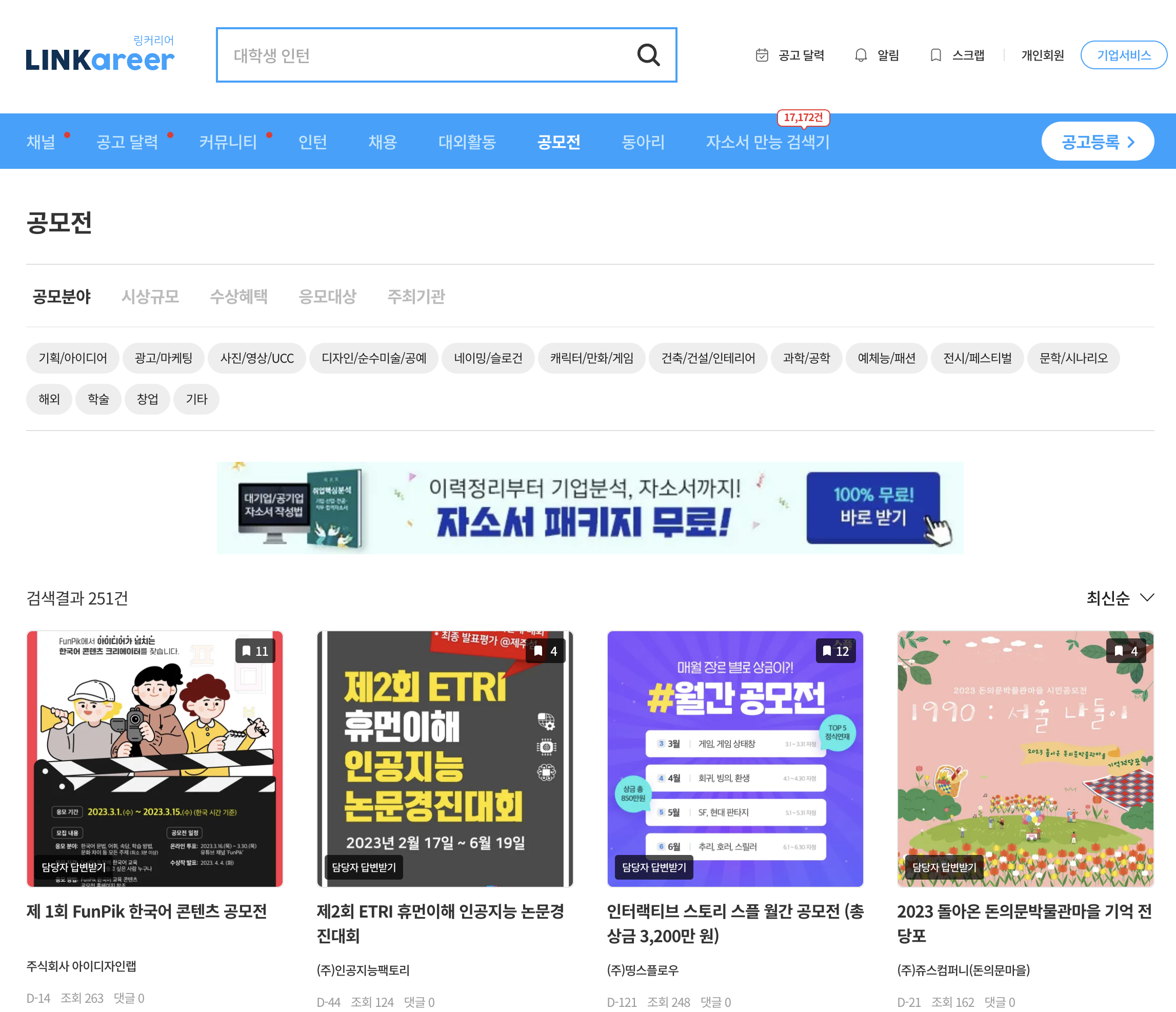 UI가 꽤나 복잡하고 유료 광고를 받은 공모전이 강조되어 있는 편입니다.